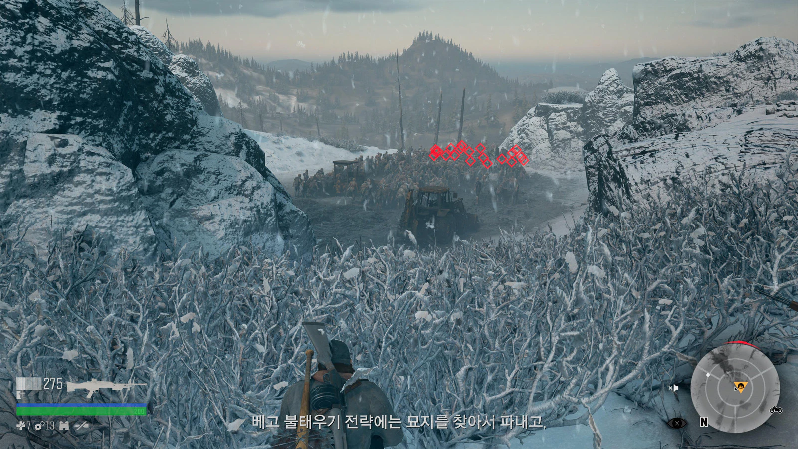 망원경으로 적을 일정 이상 표시해둘 수 있는데 저렇게 바글거리는 좀비들을 표시해놓고