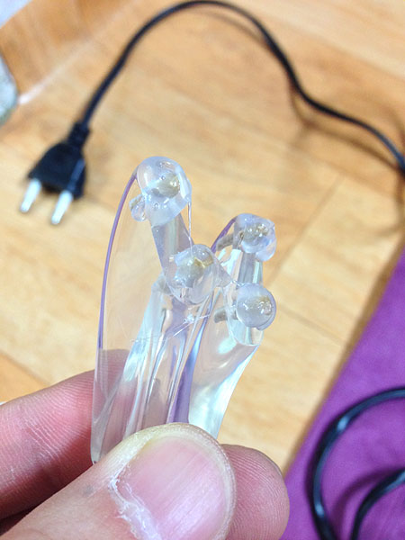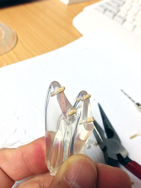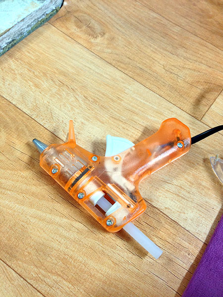 글루건으로 바른 나무봉 근처의 실리콘을 조금씩 깍아냅니다.