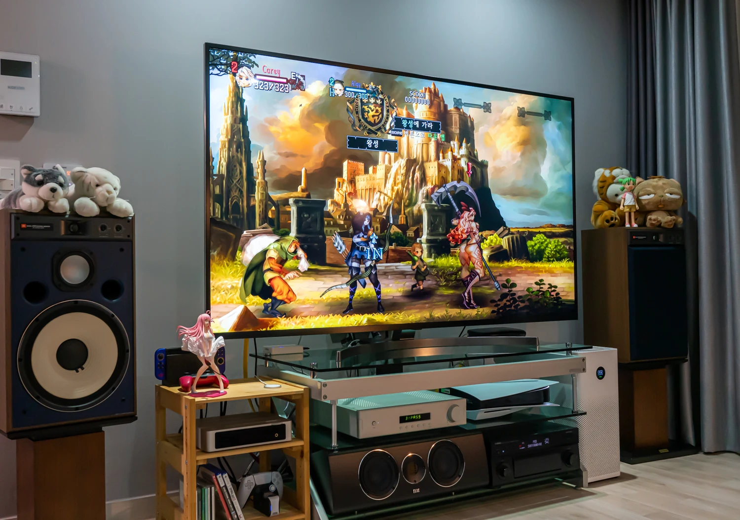 75인치 TV로 플레이하니 스파인 애니메이션이나 UI가 상당히 보기 좋고 쾌적하다.