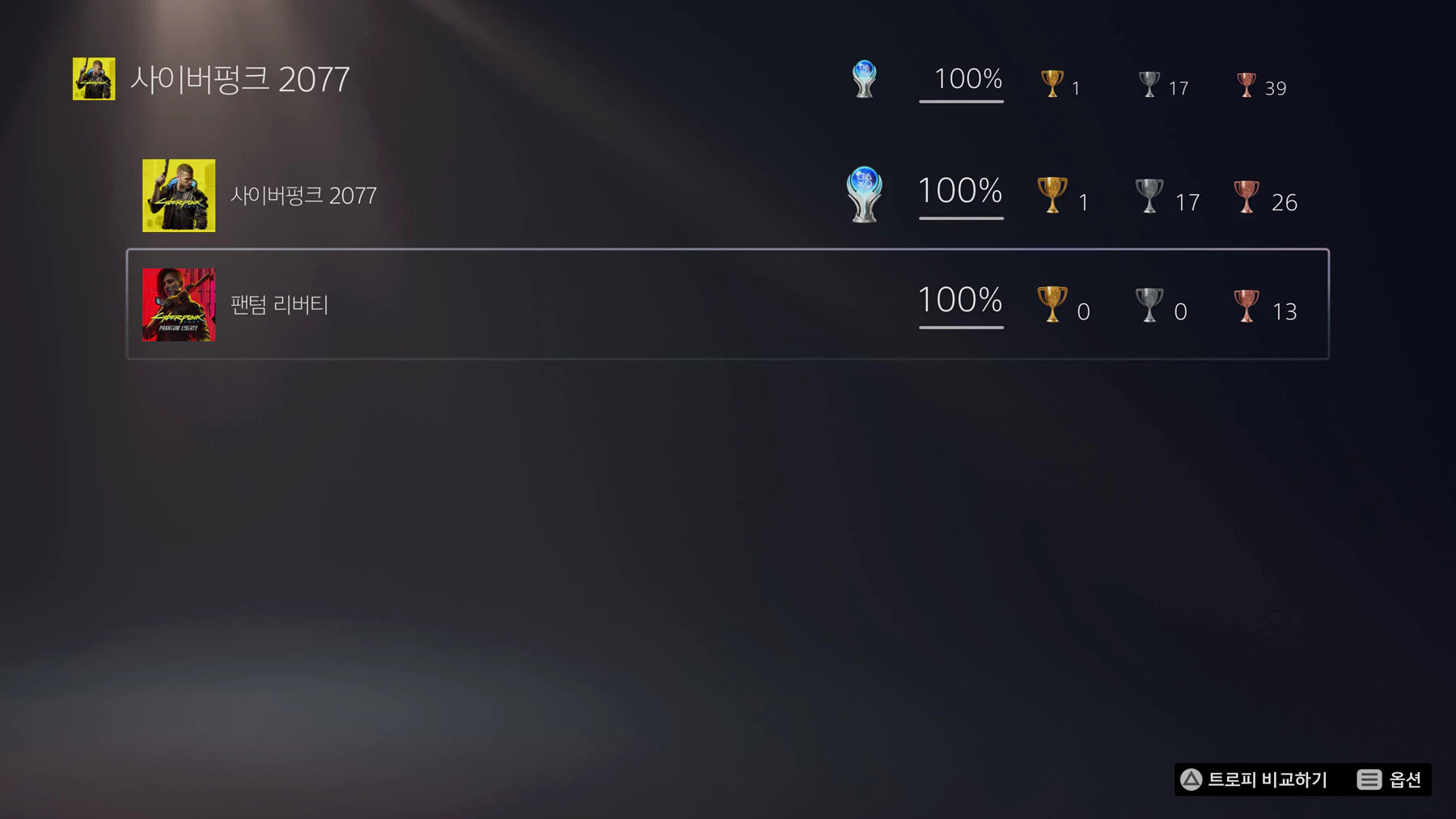 DLC는 잘 안하는 편인데 사이버펑크 2077은 플래티넘을 딴 후에도 한참 동안