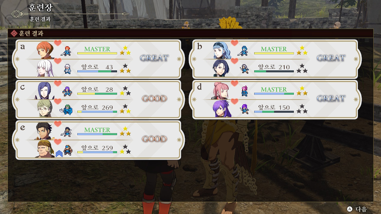 학원 파츠 대신 전투 진행마다 훈련장에서 캐릭터를 육성하게 되는데 원작보다 키우기가 쉬운 기분이다.