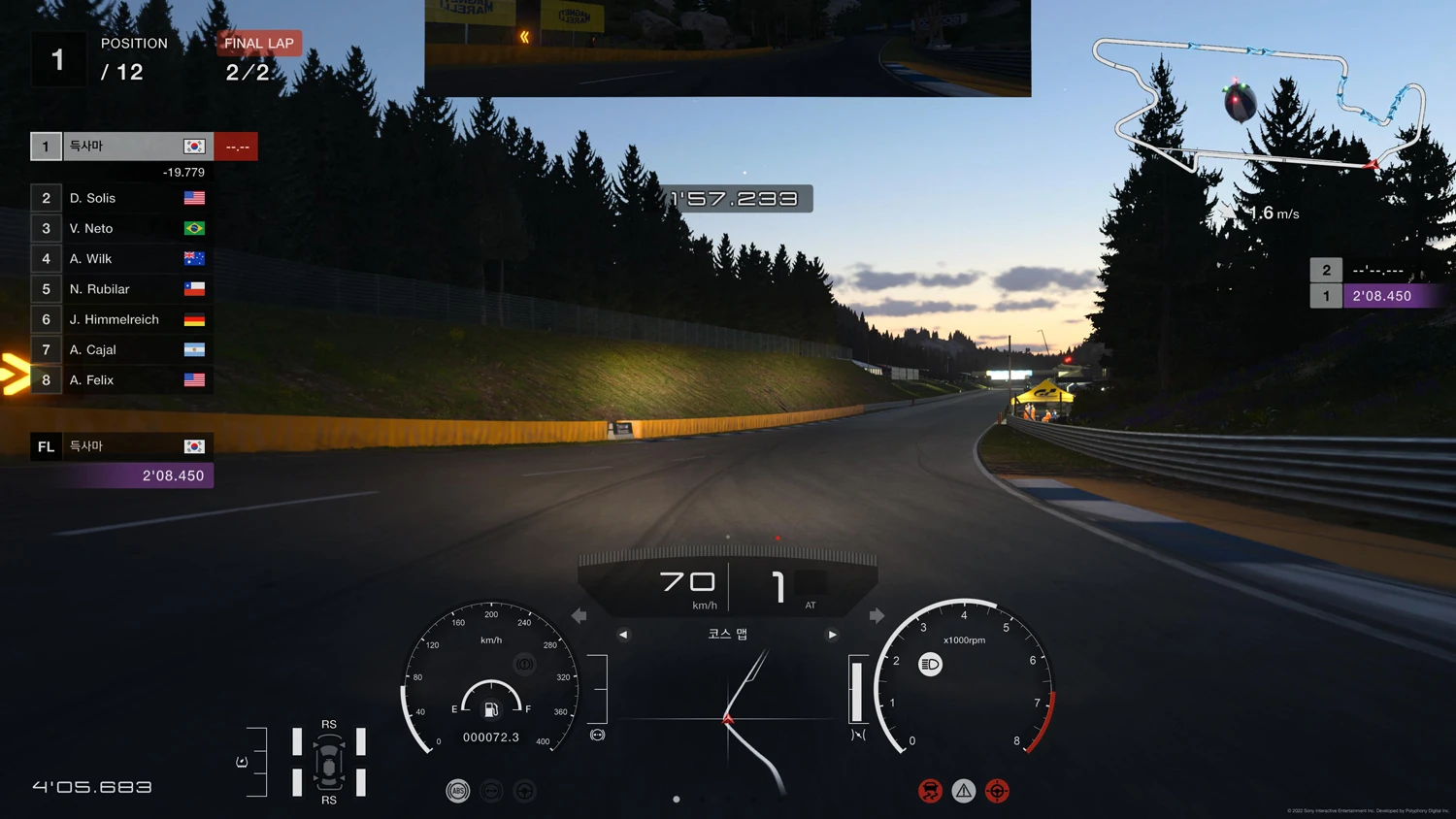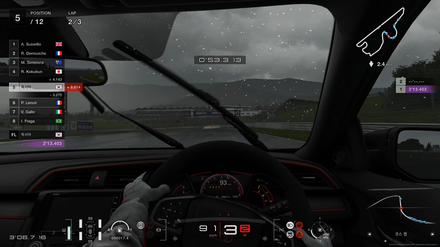 듀얼센스 대비 핸들 피드백은 여전히 아쉽지만 역시 휠 페달이 정교한 드라이빙이 되기 때문에