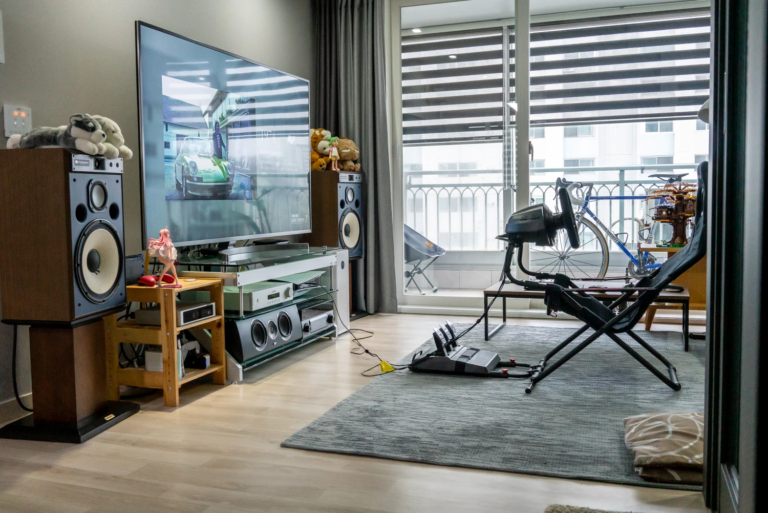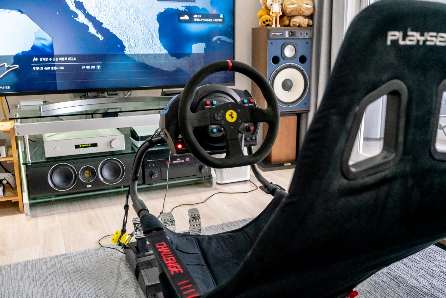 패드로도 할 만하긴 하지만 휠 페달이 기본인 게임이라 오랜만에 낚시 의자와 핸들을 꺼냈다.
