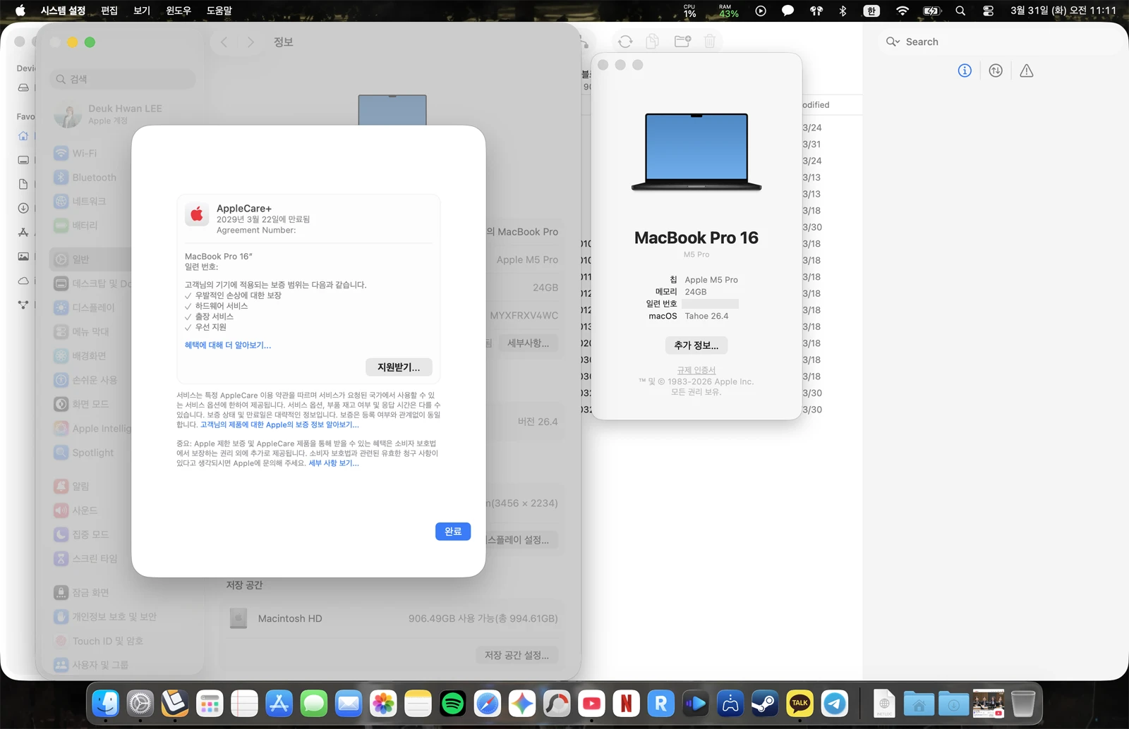 이번 맥북은 출근하면서 계속 가지고 다니는지라 애플케어 플러스를 최근에 추가했다.