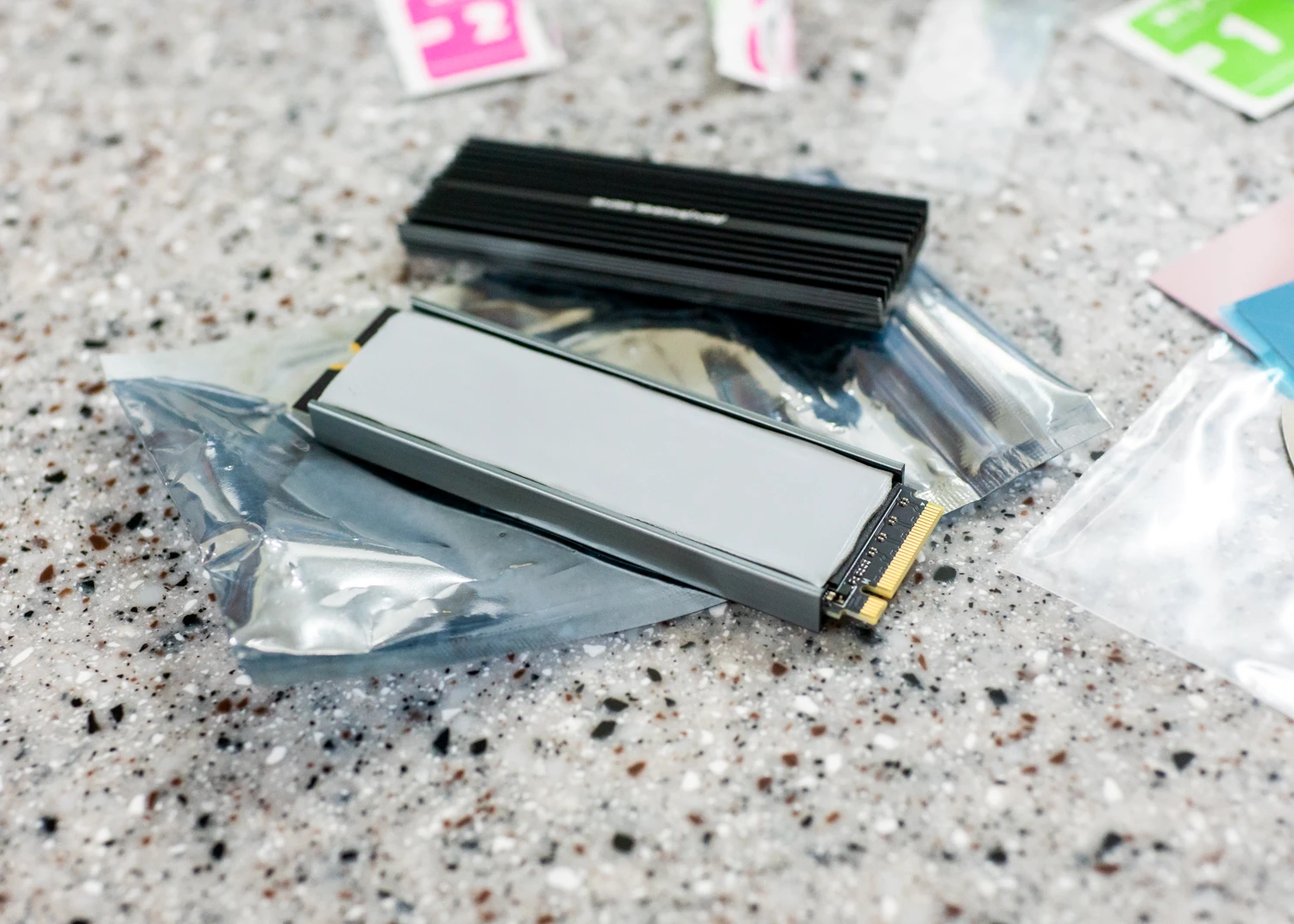 양면 SSD라 두께가 있어 얇은 써멀을 써야 하나 했는데 동봉된 서멀 패드가